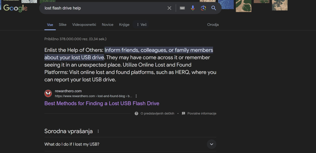Nulta pozicija: Kako sem postal prva izbira na Googlu - globalno za iskalni pojem "Pomoč v primeru izgube USB ključka"