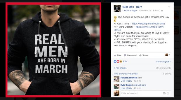 S sliko spodaj vam želim to tudi pokazati. V tem primeru govorim o oglaševanju na Facebook družabnem omrežju. In četudi se mi večinoma prikazujejo oglasi na podlagi Re-marketinga, katerega osebno sovražim, me je spodnji oglas zelo prijetno nagovoril. Seveda sem rojen Marca in ljudje smo ponosni na svoje ime, svoj kraj bivanja, svoje znamenje in to želimo tudi poudariti. Ampak kakšno naključje, da ravno meni prikaže ta oglas ane? No ni ravno naključje! Majico s tem napisom je oglaševana vsem, ki smo rojeni meseca Marca, prav tako kot je vam, ki ste rojeni meseca Aprila oglaševana majica s takim napisom. Spodnji oglas je za vas prvi namig s pomočjo katerega lahko ustvarite vaš pametni oglas.