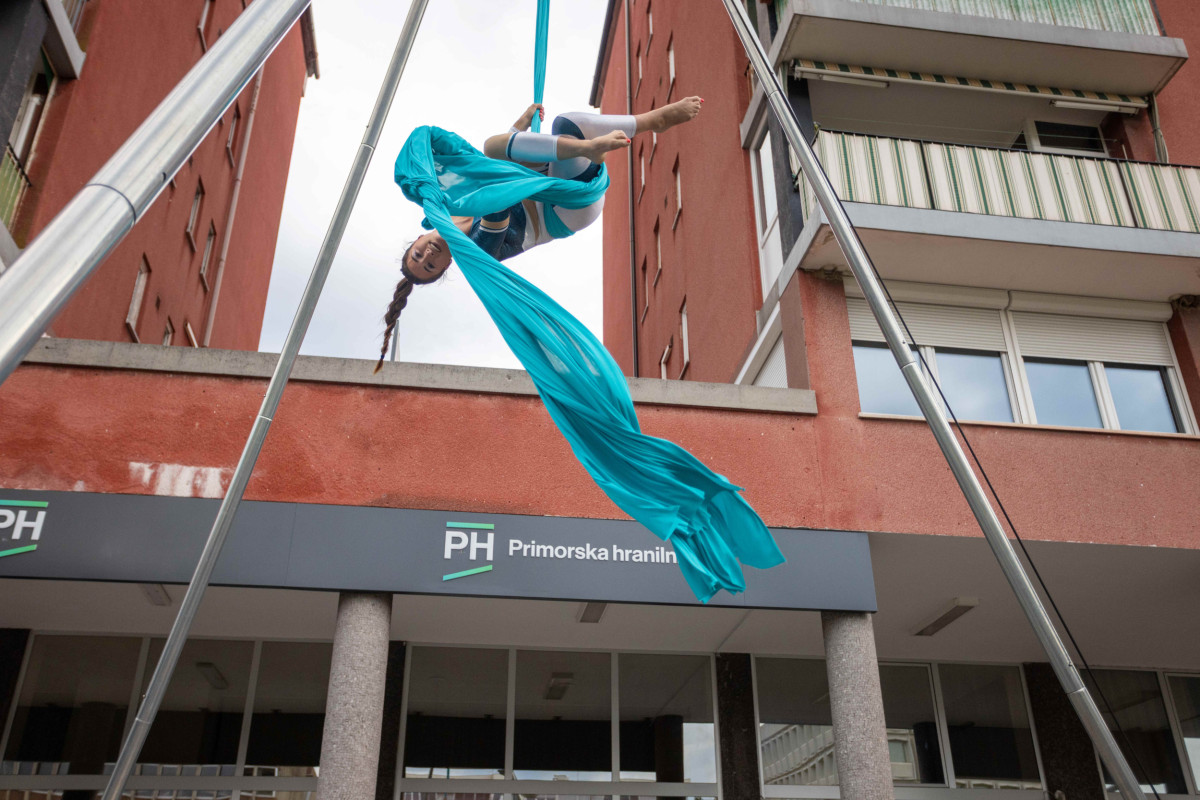 Lea se je z gracioznostjo in močjo dvigovala visoko nad zbranimi gosti, ovita v svilene trakove, ki so nežno plapolali v obmorskem vetru. Nastop, ki bi ga prej pričakovali na kakšnem velikem odru ali mednarodnem festivalu, se je zgodil kar tam – pred vhodom v bančno poslovalnico. In nihče ni ostal ravnodušen. Ljudje so se ustavljali, snemali, strmeli. Dogodek je v trenutku postal spektakel.
