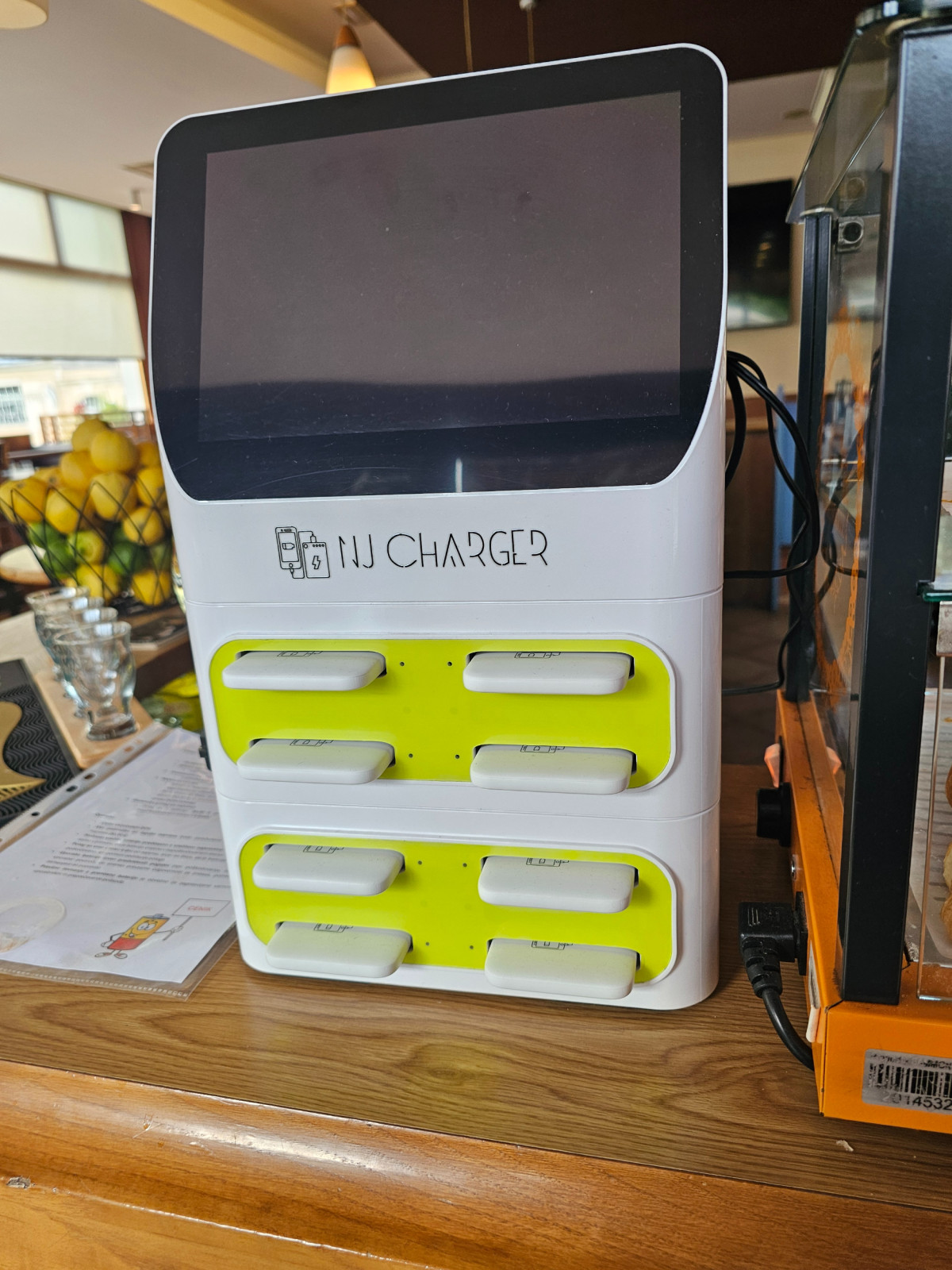 Na pultu njegove kavarne zdaj stoji naprava z imenom NJ CHARGER – sistem za izposojo brezžičnih polnilcev. Obiskovalci si lahko preprosto izposodijo enega izmed modulov, napolnijo telefon neposredno pri svoji mizi in ga kasneje vrnejo. Brez lovljenja prostih vtičnic. Brez nerodnih kablov. Brez skrbi.