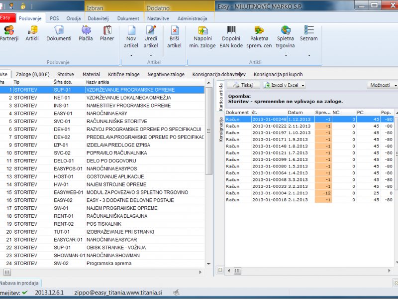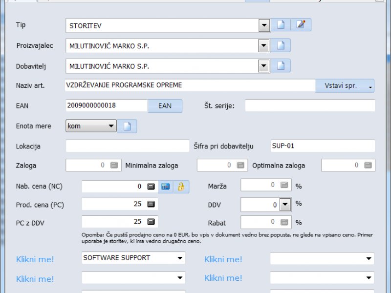 - program za fakturiranje lahko uporabljate ampak si ne morete shraniti vaših artiklov.