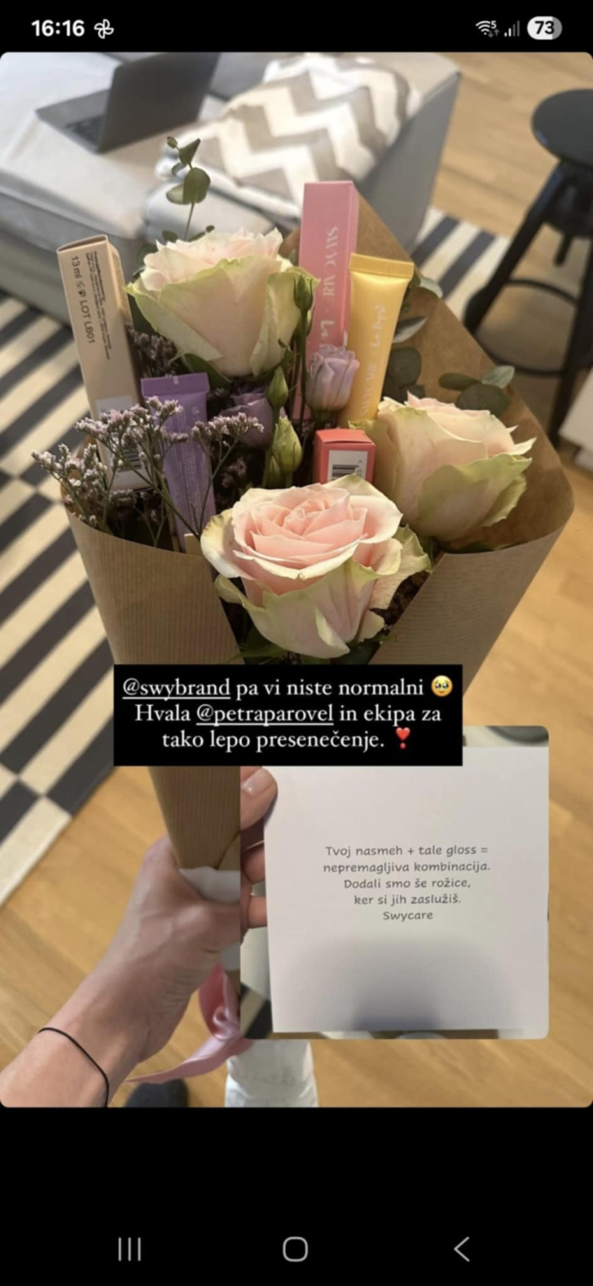 Podjetnica Petra Parovel, ustanoviteljica modne blagovne znamke SWY, je pred kratkim navdušila slovenske influencerke z zelo domiselno gesto – poslala jim je šopek, v katerem so bili skriti novi lip glossi iz njene kolekcije.