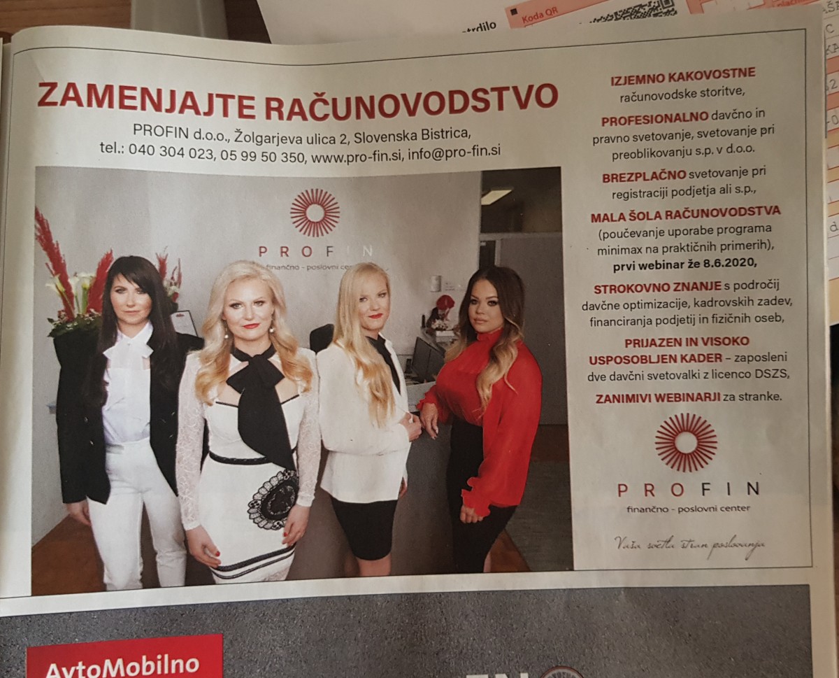In seveda mi je padel v oči oglas za računovodski servis iz Slovenske Bistrice z naslovom zamenjajte računovodstvo in dodatnim opisom kako ta računovodski servis poskrbi za vso potrebno izobraževanje. Toda oglas mi ni padel v oči zaradi naslova in nagovora, temveč zaradi fotografije mičnih gospodičen, ki so predstavnice tega računovodskega servisa. Privlačnost se prodaja in tega se zavedajo tudi v tem računovodskem servisu, kjer so poskrbeli, da so vse predstavnice lepo urejene, privlačne in pravilno postavljene pred foto objektivom. Sploh ne dvomim, da je oglas deloval, če pa jim še moj članek pripelje kakšno stranko toliko boljše.